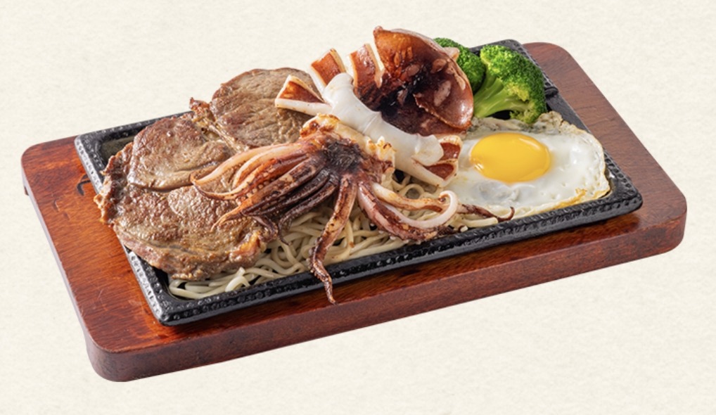 想一次滿足牛排與海鮮的慾望,這道海陸組合絕對是成功牛排推薦首選。沙朗取自肋脊部位,肉質鮮嫩中帶嚼勁,油花分布均勻,鐵板炙燒後香氣更濃郁;搭配整尾深海五味中卷,口感彈牙、份量十足,高蛋白又有飽足感,一份就能享受雙重滿足。