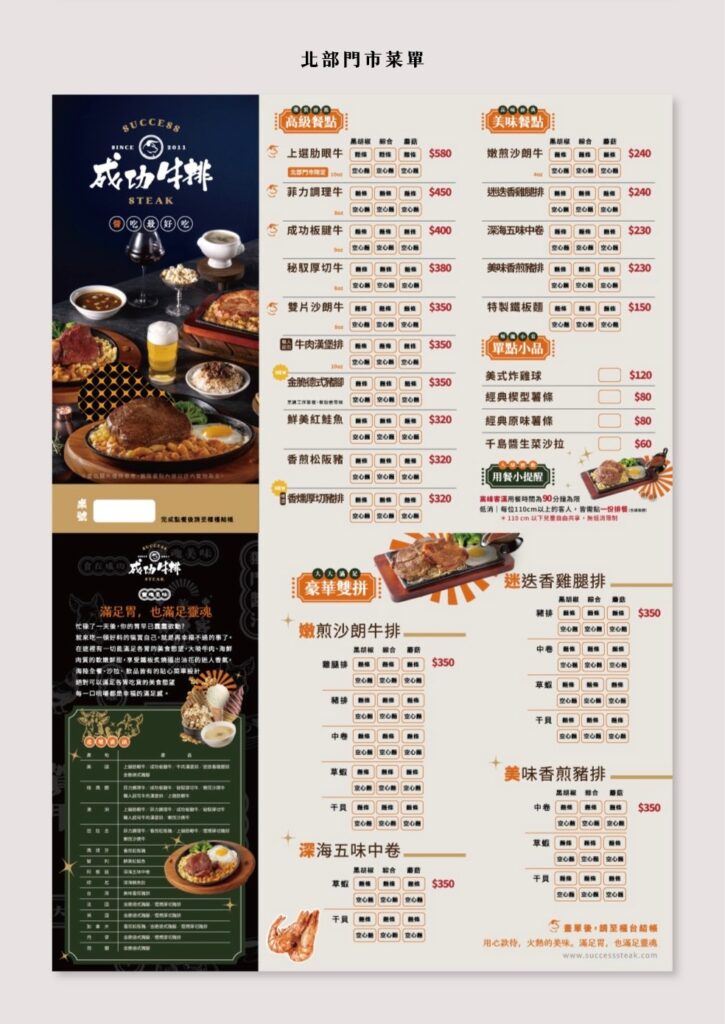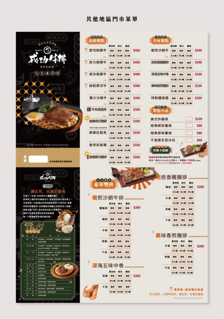 創辦人堅持只賣自己敢吃、覺得好吃的食品,從肉品選擇到製作流程皆嚴格把關。成功牛排主打「火熱的美味」,透過鐵板高溫炙燒鎖住肉汁與香氣,讓人第一口就感受到滿足。再加上高 CP 值的自助吧設計,也讓成功牛排成為學生與家庭聚餐的熱門選擇。