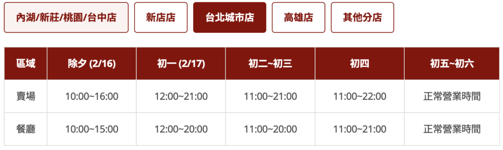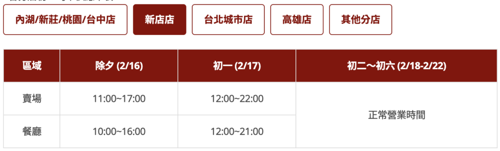 - 2/16(除夕)營業至 17:00