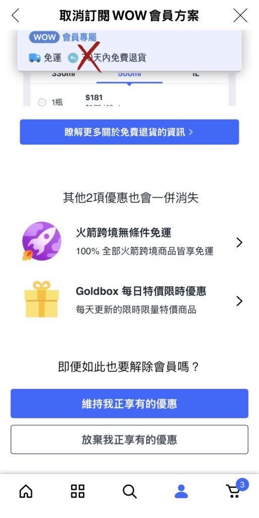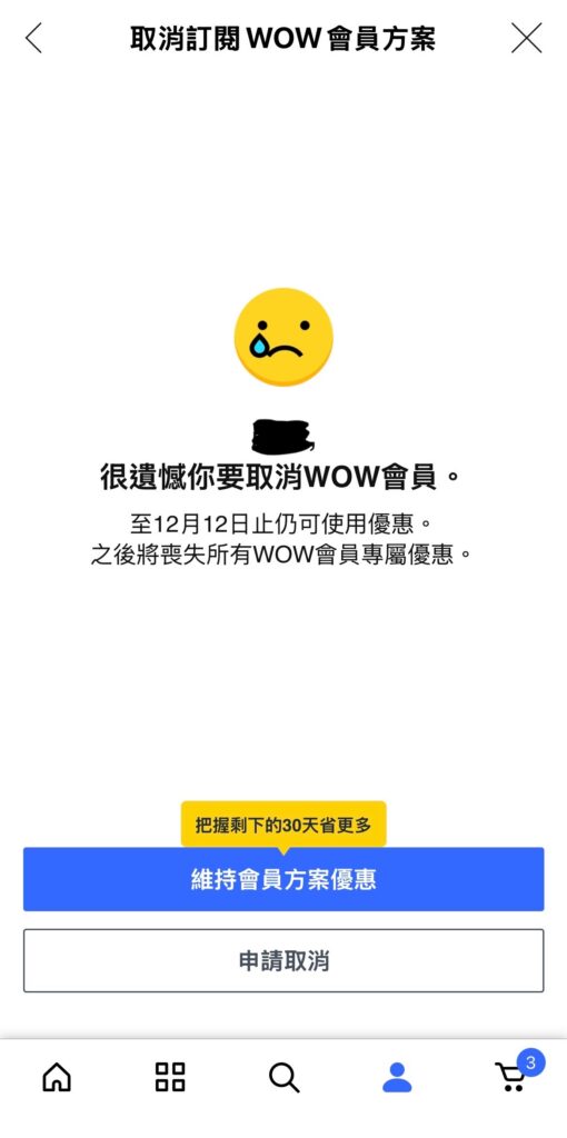 步驟 4:確認取消後,本期會員權益仍可使用至到期日為止。