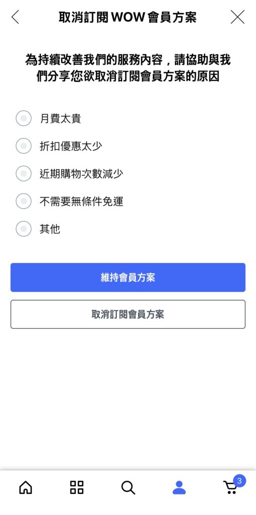 若你想取消酷澎 WOW 會員,可依照以下步驟操作: