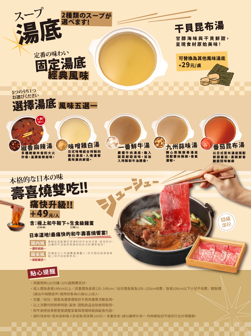除了基本的「干貝昆布湯」外,其餘湯底皆可加價 +29 元升級,口味豐富且價格親民,推薦加購嘗鮮。