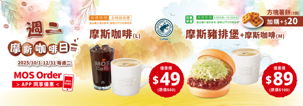 | 摩斯咖啡 | $50(M) / $60(L) | 摩斯特調紅茶歐蕾 | $75(L) |