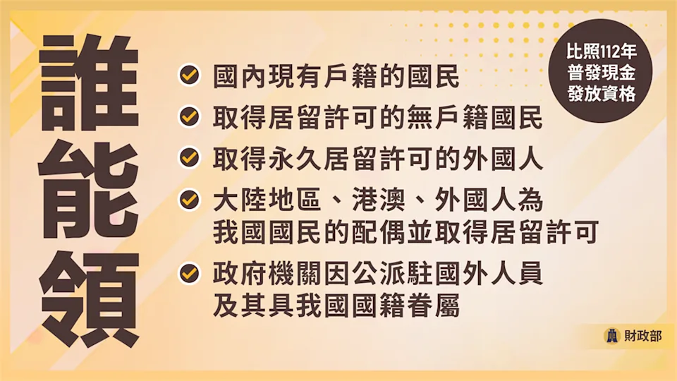 只要具備中華民國國籍、設有戶籍者,預期都會納入發放對象。最終資格條件仍以行政院公告為準。