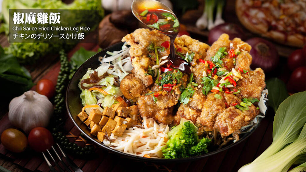 雖然名店叫「排骨」,但旗下的椒麻雞也頗受歡迎。大塊厚實的椒麻雞外皮炸得酥脆、搭配椒麻醬香氣十足,鮮紅辣椒點綴,翠綠青蔥提味,玲瓏蒜末刺激著味蕾,,是嗜辣朋友的好選擇。