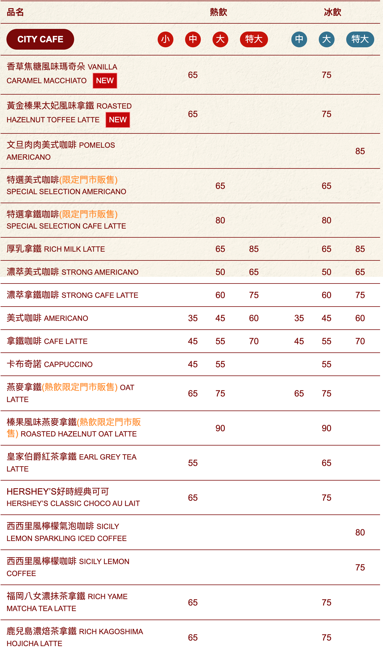 $75(限冰飲) |