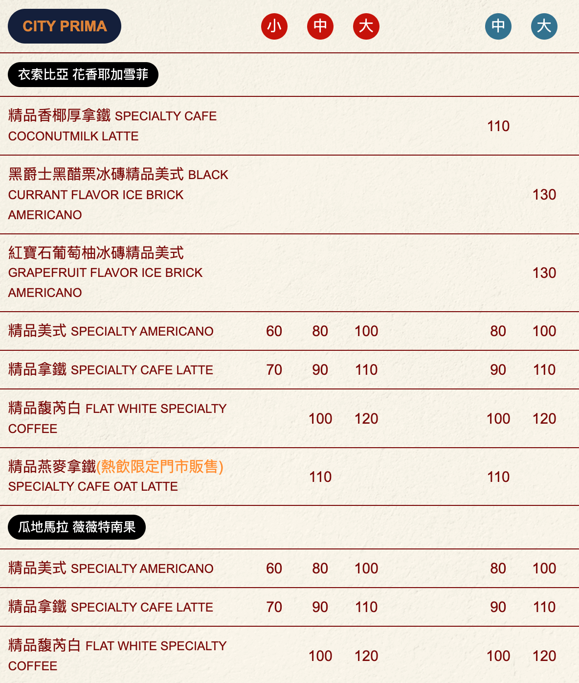 | 精品美式(衣索比亞/瓜地馬拉) |