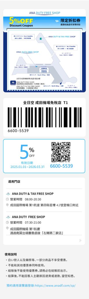 使用門檻:消費滿 1,000 日圓(未稅)即可享95折優惠