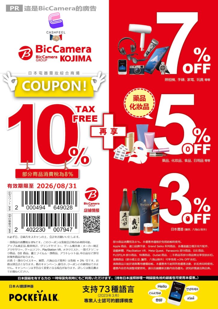 使用說明:免稅結帳時再享3C家電類7%、藥品化妝品5%、日本清酒3%