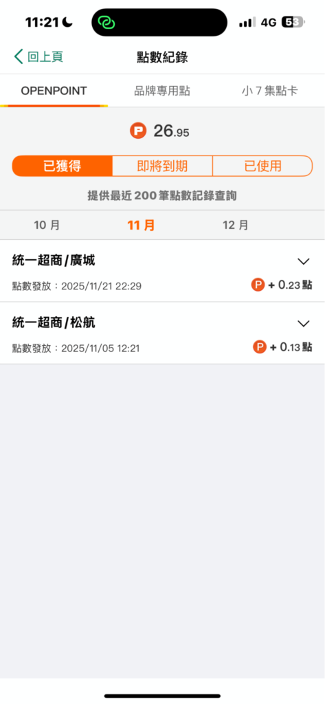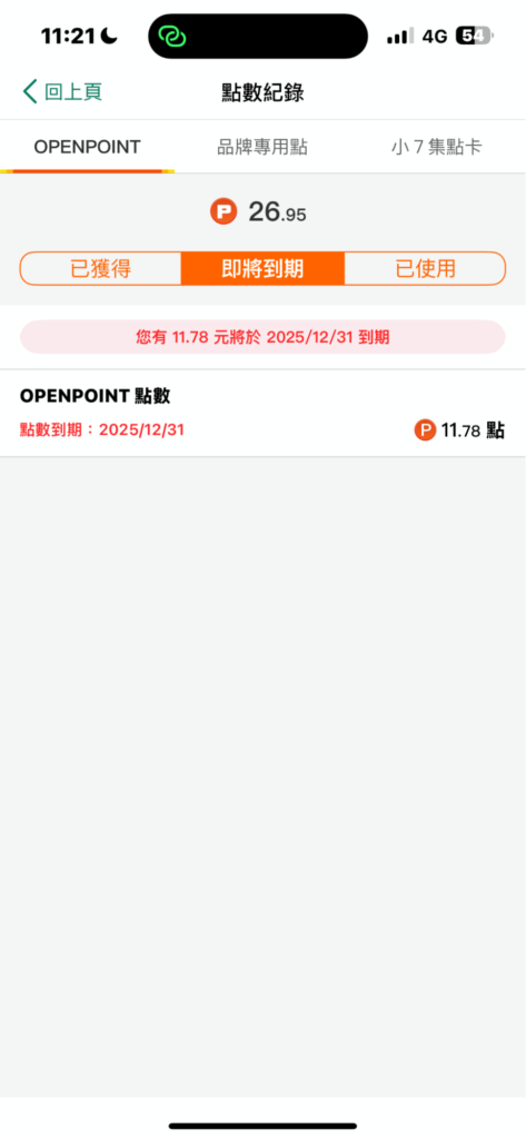 可打開 OPENPOINTS APP,首頁就可以看到目前有的點數,點開點數之後即可看到快過期的點數、最近獲得的點數。